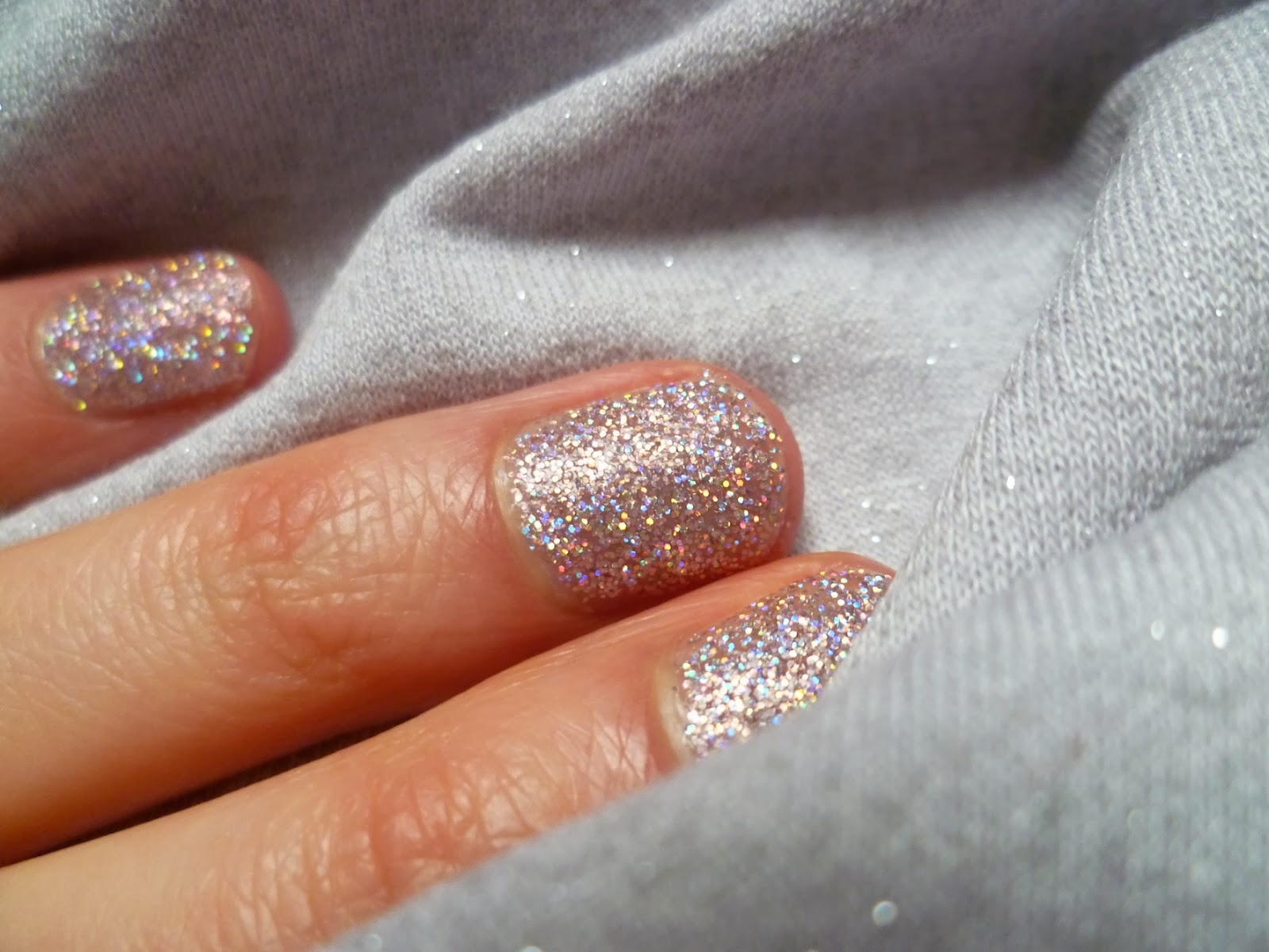 C'est la première fois que je pose un vernis de ce type sur tous les ongles. D'habitude, j'applique juste une fine couche de paillettes par dessus un vernis coloré, uniquement sur les annulaires. J'avais peur que ça fasse too much, mais tout compte fait je trouve ça super sympa pour une occasion (et puis j'aime tellement les paillettes... ♥).